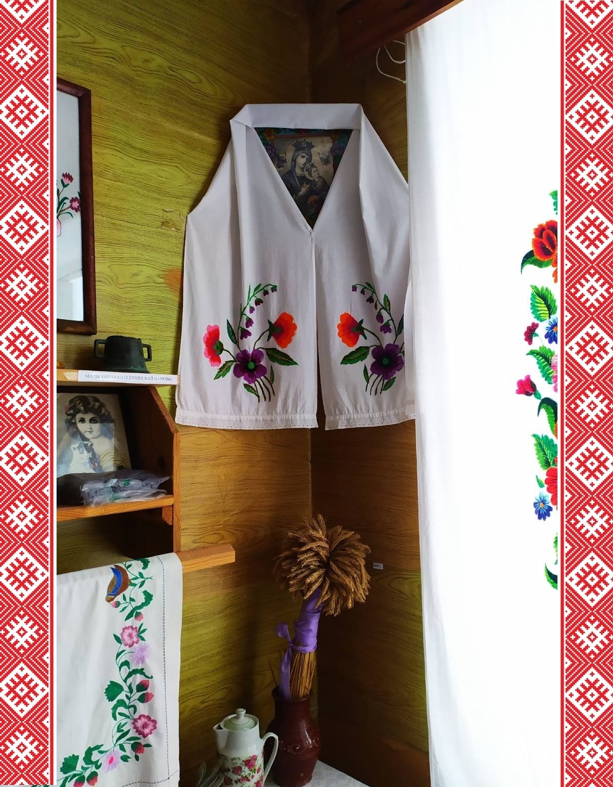 Рушник с вышивкой – полотенце (кусок полотна) с вышитыми узорами, отрез ткани, льна, украшенный прошвами, кружевом, подзорами, атрибут всех народных праздников и обрядов. Рушник — это своего рода вышитое символьное письмо. Эта вещь несёт в себе множество смыслов, хранит историю и традиции народа. Выглядит рушник как длинное полотняное полотенце, расшитое по краям богатыми орнаментами. Однако он не используется, как обычное полотенце, в хозяйственных целях. Рушник является произведением народного искусства, воплощением национальной культуры.